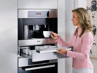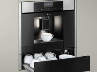 It is possible to single out not only the functional spectrum, but also other pleasant trifles.Care of such equipment does not cause any difficulties. Trays from the coasters for cups are removable, they can be cleaned on their own using a damp cloth (or even put in a dishwasher). Some models are also equipped with sliding shelves where you can store a set, cups, coffee beans and more.