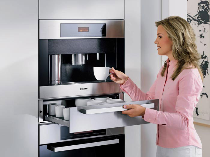 Of course, many manufacturers of equipment provided mobile versions of coffee machines. Usually the ability to move the device is always presented as its positive quality. If you make a comparison with embedded types, you can find that mobility is not a very obvious advantage. The fact is that the built-in coffee machine will take up much less space in your kitchen, and its fixation and the absence of the need for movement will only save expensive equipment from the risk of damage if it falls or hit.