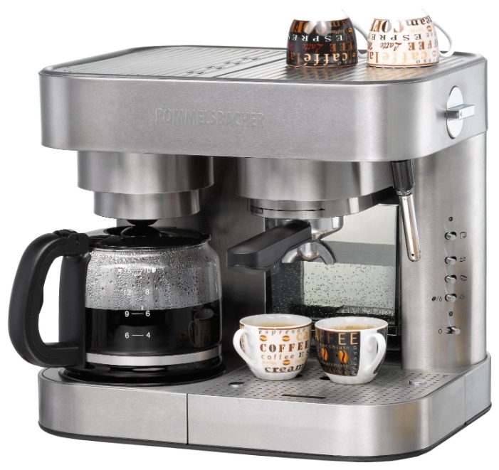 - Combined. The device combines the capillary principle of action and the advantages of an espresso coffee maker.Consists of two autonomous compartments - for coffee and water. For cooking, simply pressing the button. When using high-quality grains, a very high-quality product is obtained, but it is necessary to pay a lot for such an aggregate.