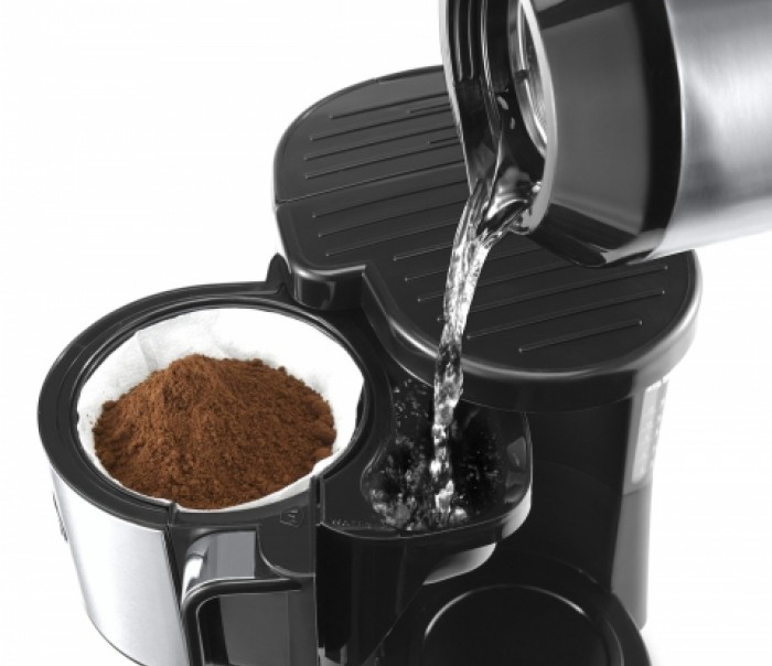 - You need to measure a certain amount of ground coffee and pour it into the filter.