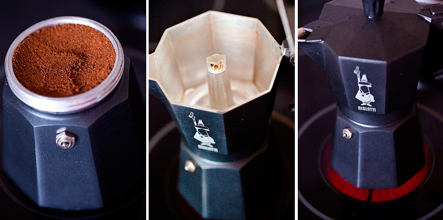 The lower compartment is filled with cold water, and a sufficient amount of coffee is poured into the filter. The drink turns out very tasty, especially loved in Italy.