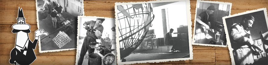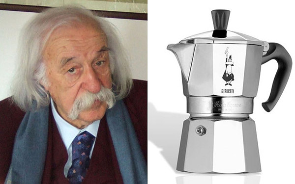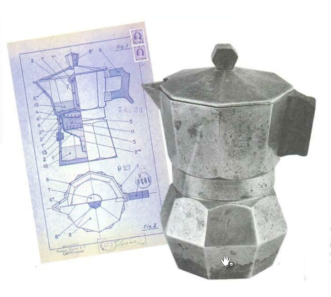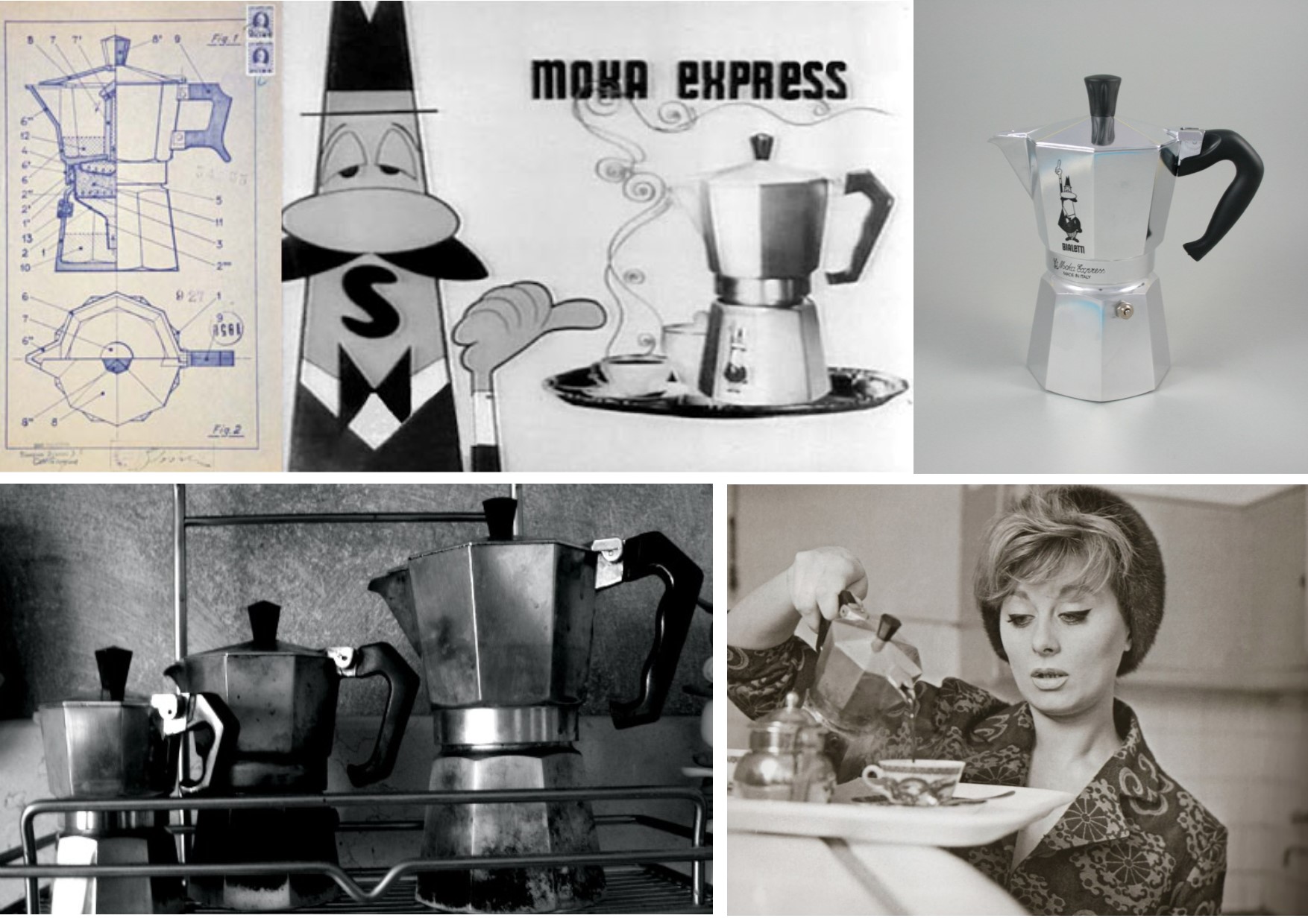 The famous mustache man in striped pants appeared much later. It was coined and painted by Paul Campani in the 1950s, after which the logo was applied on all Bialetti coffee pots.