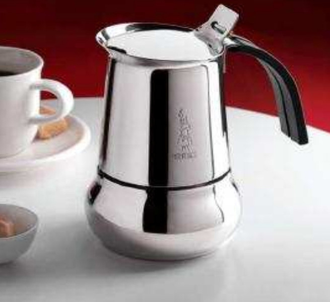 Coffee maker for induction hobs.It differs from the previous model in that it is made in the classic octahedral form. It also has a different volume and has a heat insulating handle.