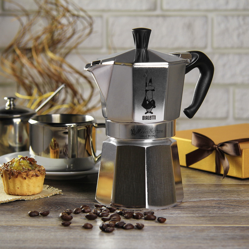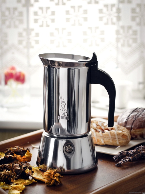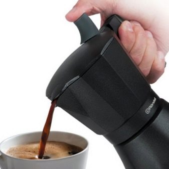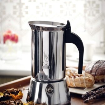 - Bialetti. Another quite popular Italian manufacturer, which manufactures products designed for use on gas, electric and glass-ceramic stoves. The devices are made of high-quality aluminum and equipped with a plastic handle. Bialetti coffee makers can not be washed in the dishwasher. The cost of products of this company is quite democratic, which certainly attracts the attention of buyers.
