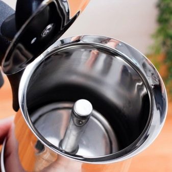 After some time, a thin layer of coffee oil may form on the walls of the coffee maker containers. It prevents the appearance of an unpleasant taste of the drink, so wash them very carefully. Pay attention to the filter, rubber gasket and safety valve. If used improperly, these parts can fail, and it is usually quite difficult to replace them.