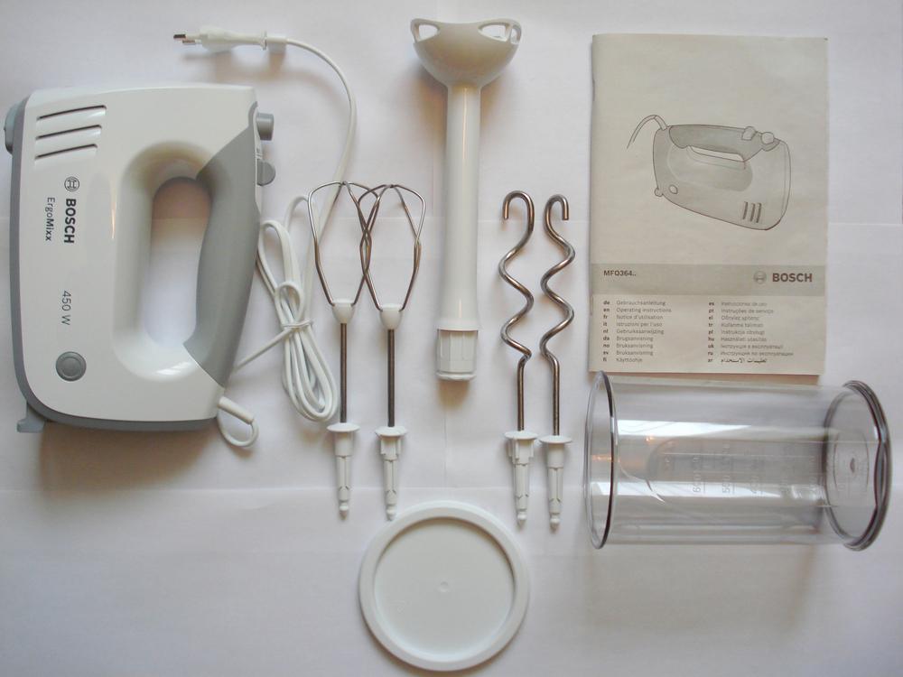 If you need a more compact, but no less functional mixer, you need to pay attention to the model MFQ36440 from the above company Bosch. The versatility of this option is that, if necessary, it can easily replace the blender. Complete with a mixer comes measuring cup, which is used for processing products. The container has a lid, which is quite convenient when working.