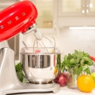 - This famous brand produces multifunctional kitchen mixers. The most important advantage of this device is its stylish appearance, in addition, it has a platform on which you can compactly place all the elements of this device after using them. Many users indicate that this design facilitates the storage of the mixer.