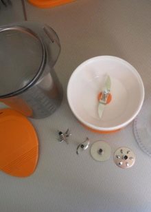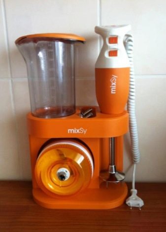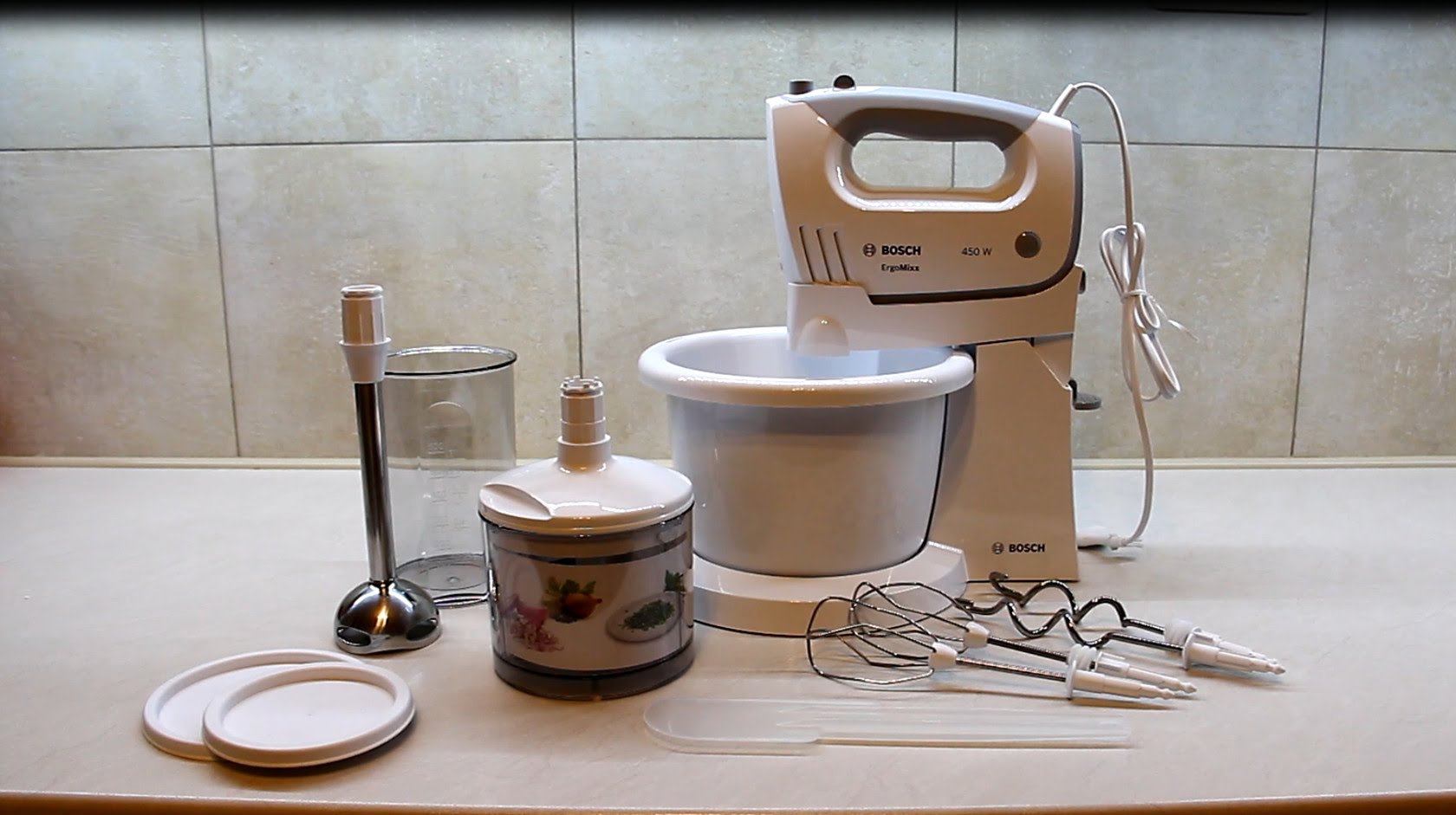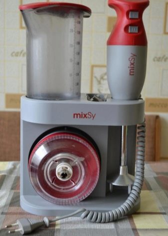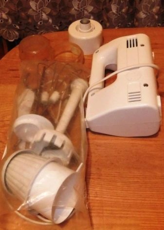 The mixer with a mixer also includes a nozzle-beater, with which customers make homemade mayonnaise and mashed potatoes, as well as a whisk for making protein cream, whipped cream, sauces, dough and cocktails. Another attachment is a mill, it can be used as a cheese grater, and also in place of a coffee grinder. With its help, you can also chop any cereal or nuts.