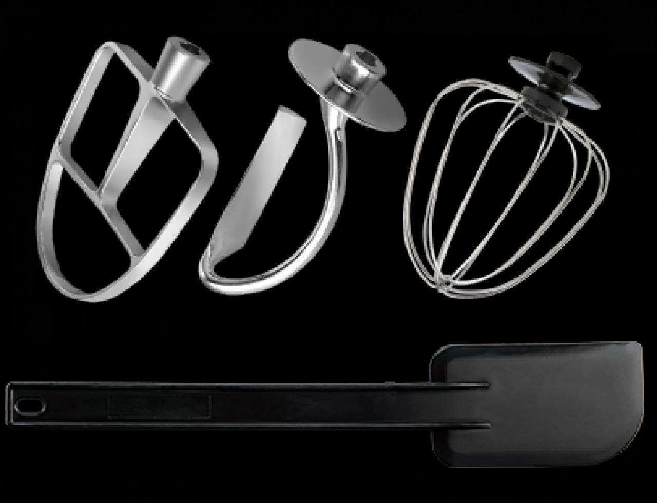 - This manufacturer of kitchen appliances produces stationary mixers and planetary models. The best-selling mixer models from this brand are KL-5051, KL-5052 and KL-5058. These are single-type models; they include three nozzles in their kit: a whisk, a hook for kneading thick dough, and a nozzle for mixing products. The device also has a bowl made of stainless steel, a spatula and a protective cover that prevents the contents of the bowl from splashing. Buyers write, these models are quite powerful, so they mix the ingredients well.