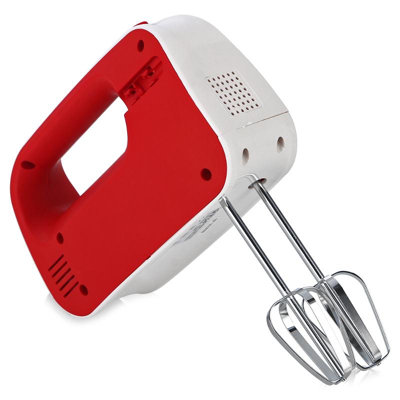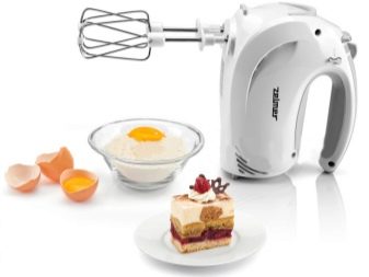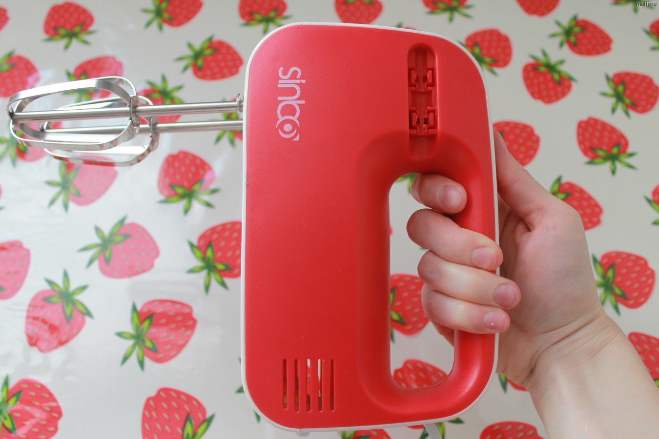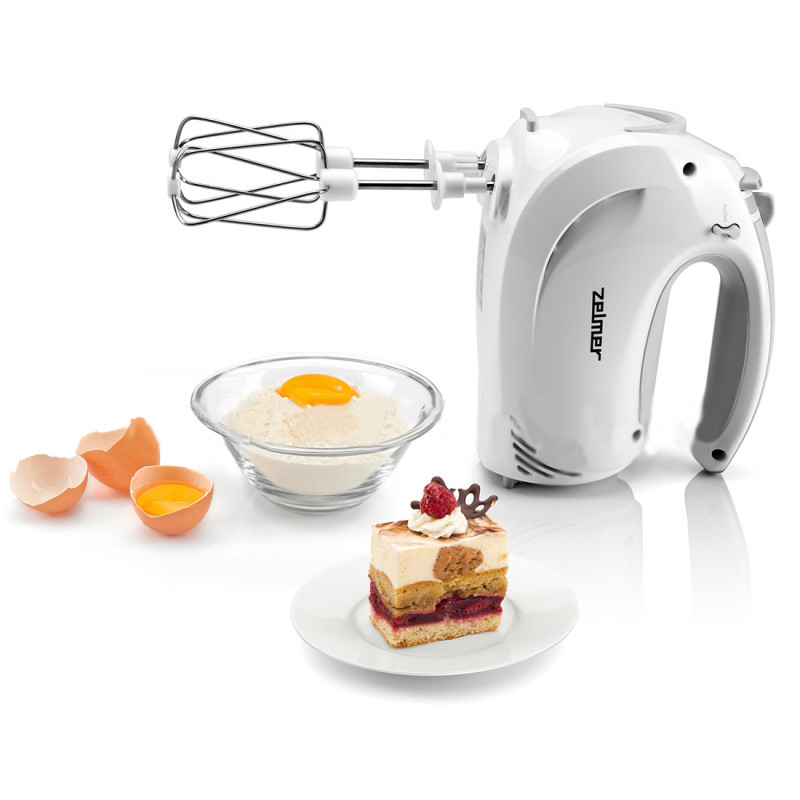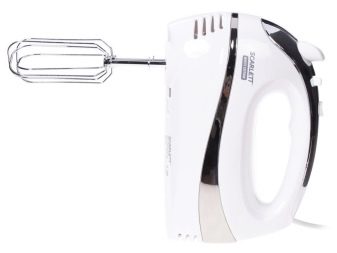 The 300W Sinbo SMX-2733 manual mixer has 3 working speeds and just one whisk for whipping.The device is made of plastic, which has a button for separating nozzles and a compartment for storing them.