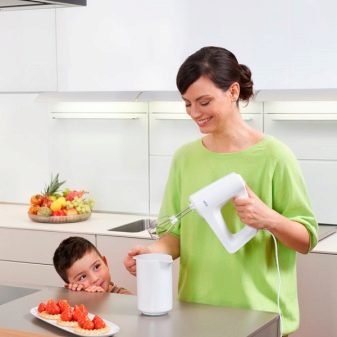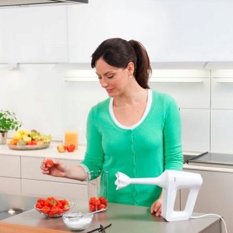 All models of this brand are not similar to traditional hand mixers, they have a handle like a blender and be sure to have a foot for beating. In fact, these devices are industrial blenders, although they are positioned as mixers. Whisks for whipping come complete with devices in the premium price segment.