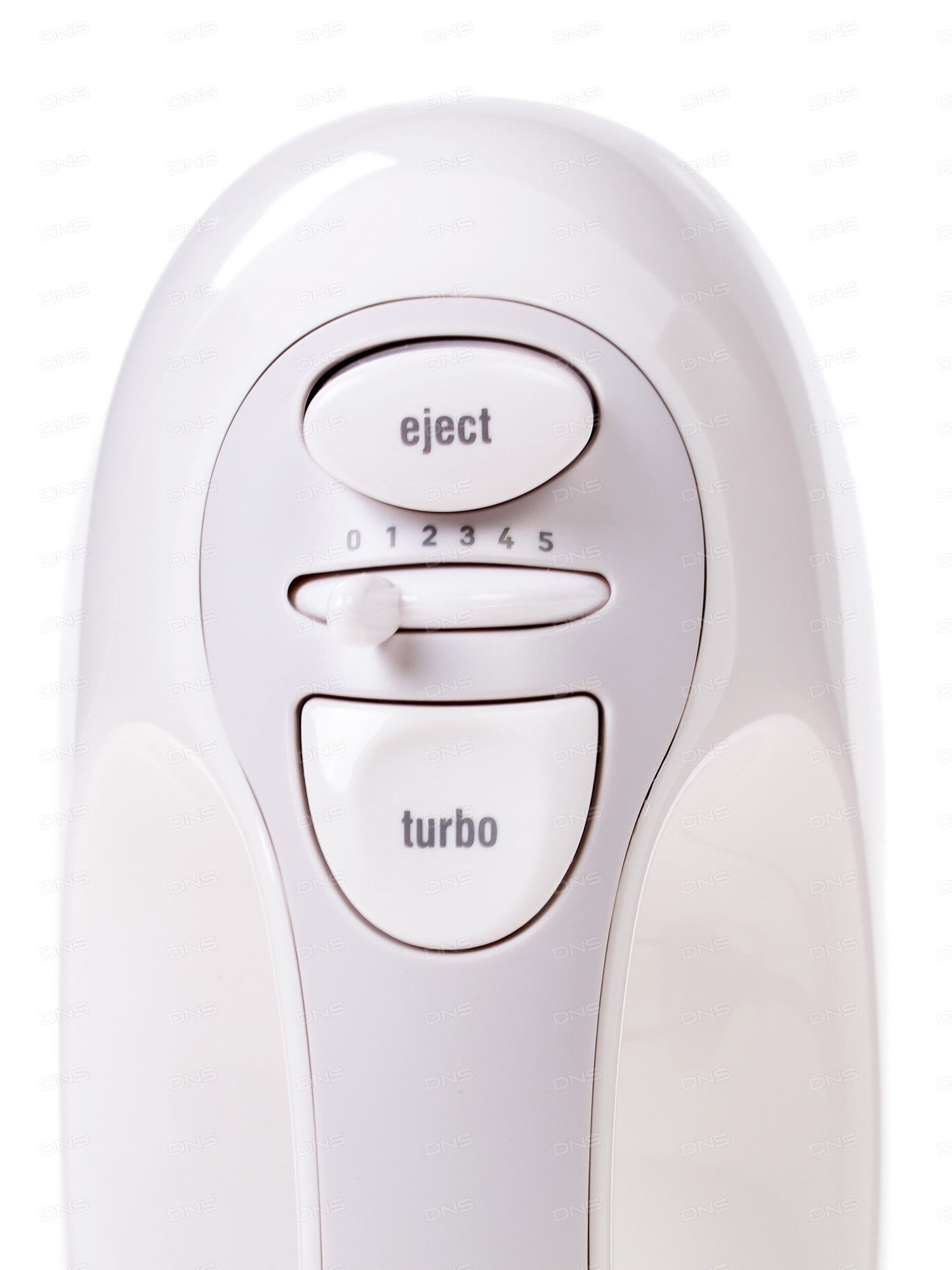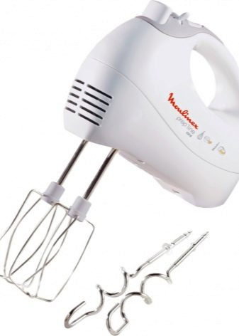 Moulinex HM 4101 beats at a power of 450 W at five speeds. It has an additional turbo mode and two types of nozzles: a whisk and a hook for the dough. On the case there is a button to reset the nozzles.