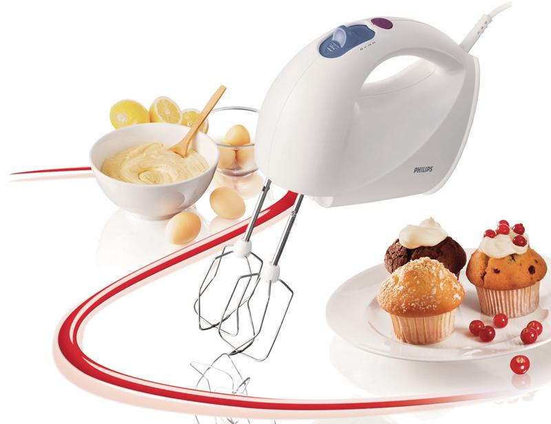Braun HM 3105 WH is practically a combine: in addition to whipping for beating, it is equipped with a plastic blender foot and a plastic measuring bowl. Device power 500 W, 5 speeds + turbo mode.