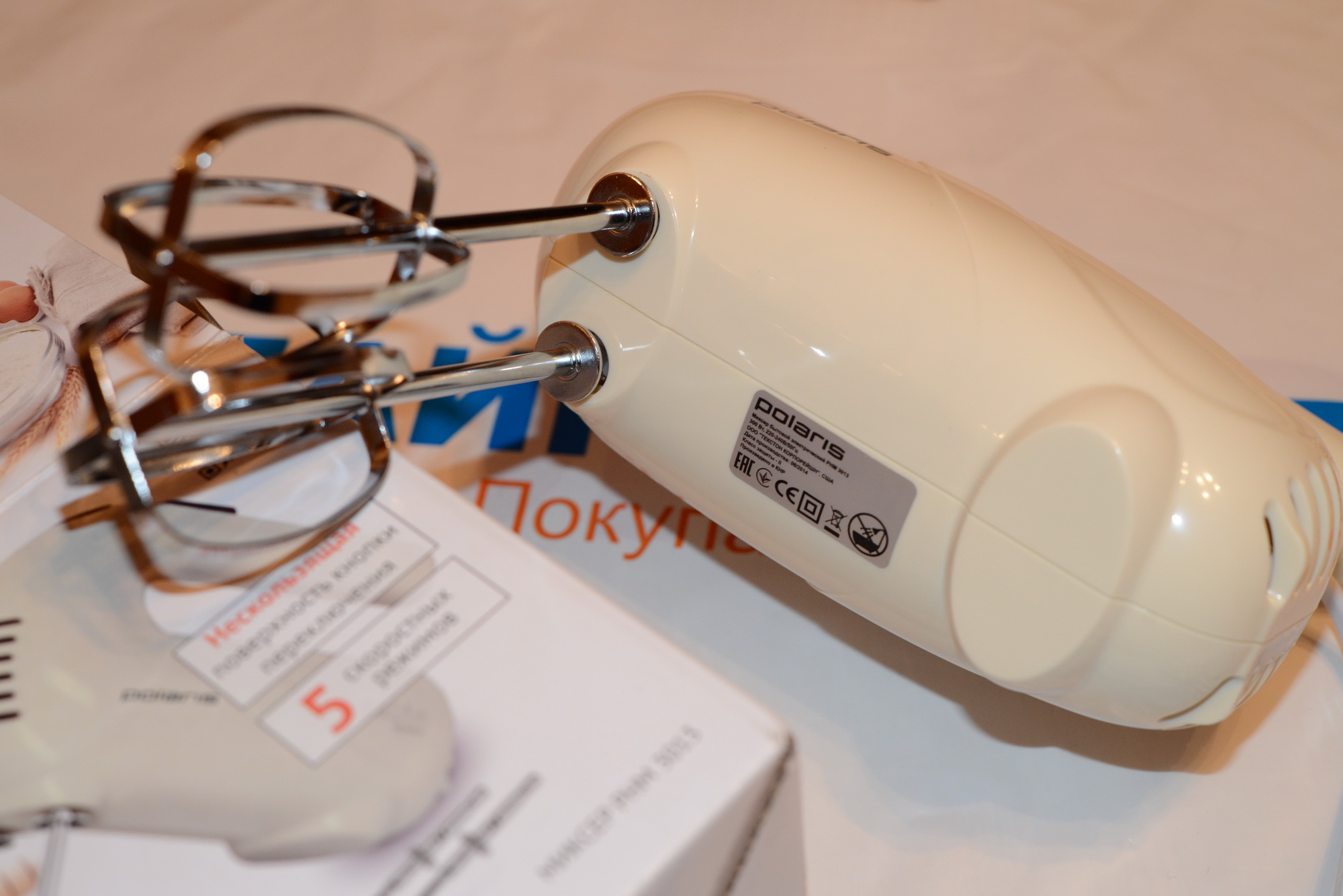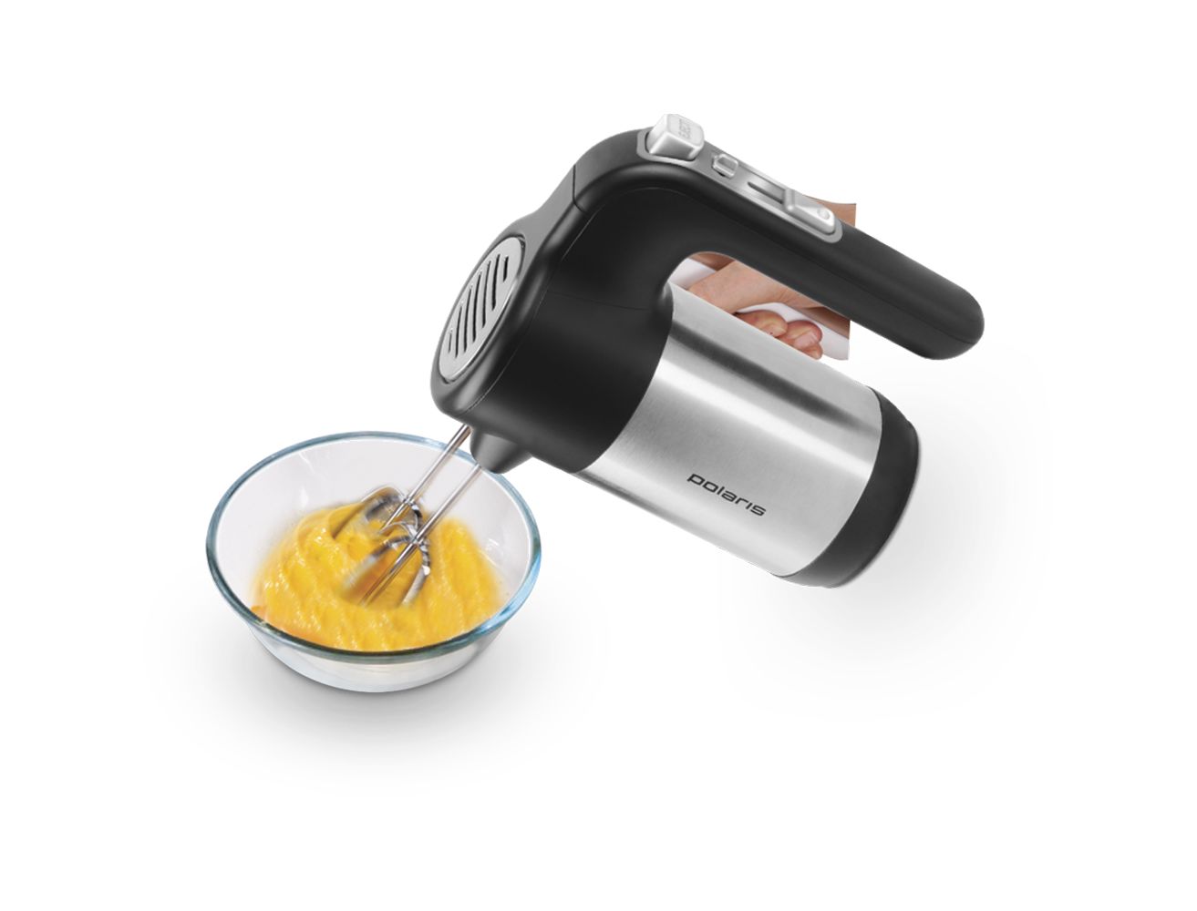 The easiest mixer - Polaris PHM 2010, which includes a standard whisk. The functionality of this device is limited to whipping creams, egg whites, pancake dough. A little dough with a lot of flour, he will not pull. Squirrels to peaks will be whipped for more than 15 minutes. The engine needs a break in work.
