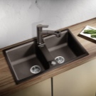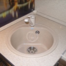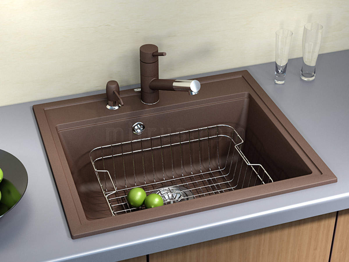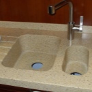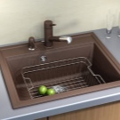 - Particular attention should be paid to the performance of stone sinks. In these indicators, the product is in no way inferior to common metal variants. It is worth noting that some stone sinks even exceed in performance the many options. The artificial stone does not give in to deformation at temperature differences, keeps the color and is steady against mechanical influences.