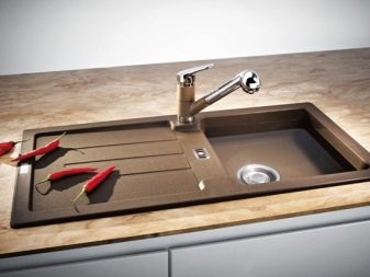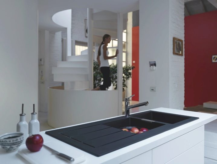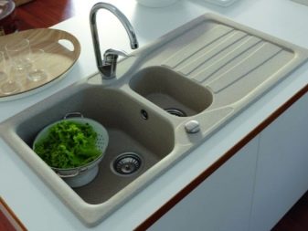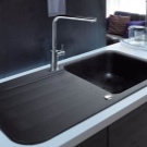 - Durability - it is difficult to scratch or damage it with the help of household chemicals. It cannot be damaged by a specially or accidentally dropped sharp object - the granite from which the sink is made will withstand such a test.