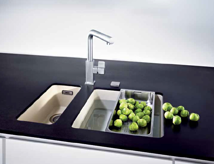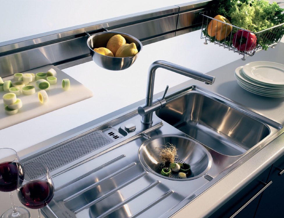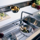 Depending on the interior of the kitchen, you can choose a round bowl, such as Ramiro. There are models that include a cutting board and a bowl for drying dishes. Shells with complex shapes such as trapezium, etc. are very popular. Almost all models of kitchen sinks Franke have a safety valve against accidental overflow of water.