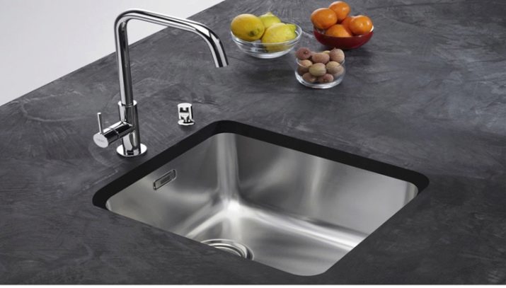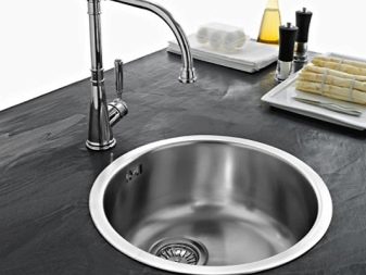 Wrapped models of steel sinks allow you to position the bowl on both the right and left sides, depending on the design of the kitchen unit. Stainless steel goes well with other metal elements of the kitchen. The variety of forms allows you to pick up the sink absolutely for any headset. There are round, square and rectangular specimens, as well as shells of complex polygonal shape.