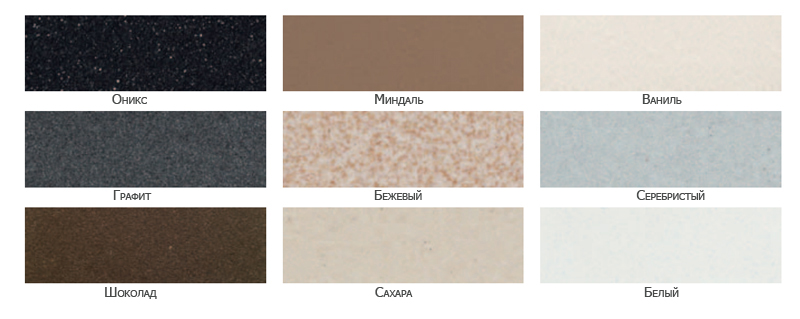The color scale of granite sinks will satisfy the most demanding request. The offered colors of sinks from artificial granite: