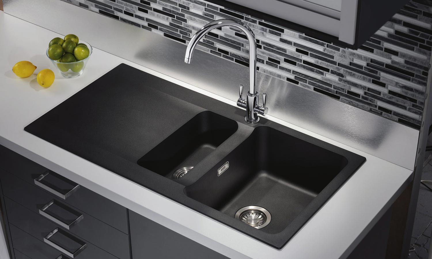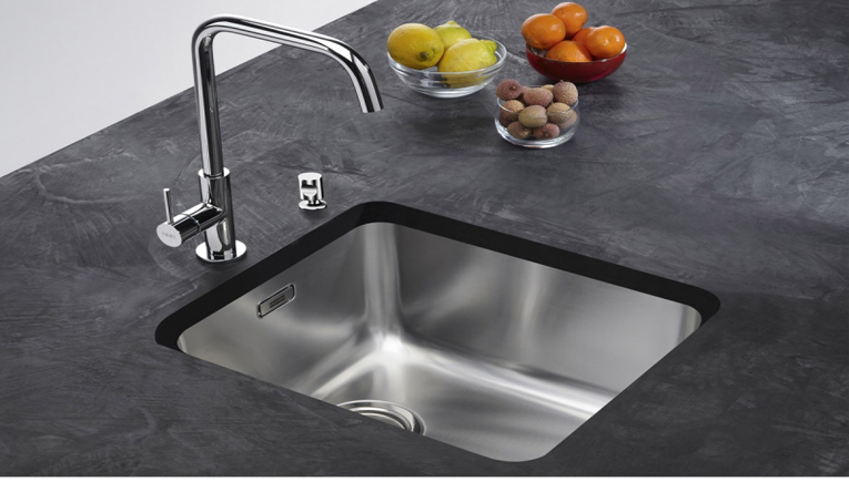 Due to the thick layer of steel, Franck’s sinks barely make a sound when they come into contact with water or dishes.