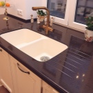 - From the bottom of the table top. In this embodiment, the sink and tabletop constitute a unit. This is especially true for sinks of composite materials.