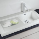 All products differ in diameter, and are often additionally equipped with dryers, which are located in the same plane with the table top. As a rule, the surface of the dryer has a slight slope (2-3 degrees), which ensures the flow of water into the sink.