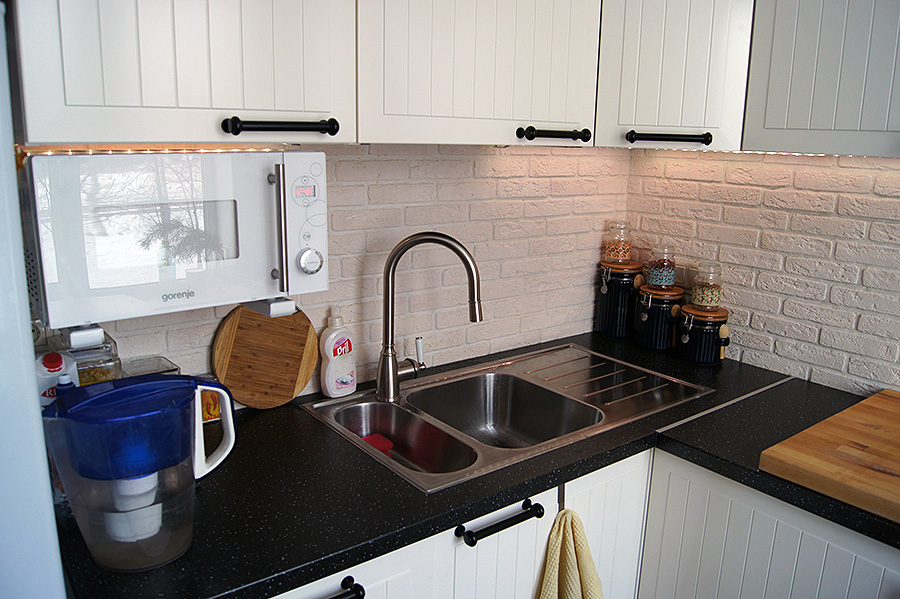 - a small kitchen with a narrow suite, where there is no possibility to install a sink more than 40 cm wide;