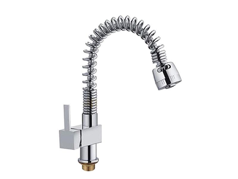 With flexible spout (F4034, F43701, F4319). Due to this structure of the crane provides a delicate water pressure. Under which you can wash the vegetables and fruits without damaging them.
