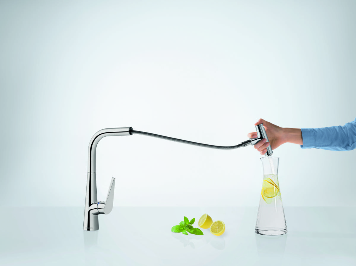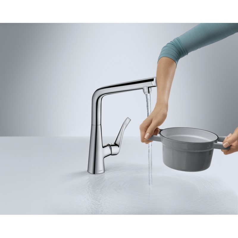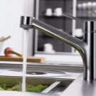 Talis line mixers allow you to increase the working area near the sink. If the sink is located, for example, in front of a window, a tap with a folding function is useful here: lift the lever, lower it on its side and you can open the window.