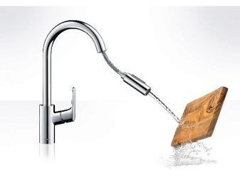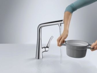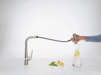 The developers of this design believe that the more space between the faucet and the sink. It is more convenient to use such plumbing. The dimensions of these models are extinct with the famous German accuracy - up to a millimeter. Each do has a semantic load, and the design pleases with a variety. This function is especially appreciated by cooks in public establishments, when it is necessary to fill with water or wash a large container.