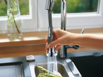 Focus models with retractable spout and two different types of water jet are available in more expensive and budget options. Thanks to such a device, you can wash the products or take water into the container without fear that it will flood the floor and the countertop.