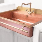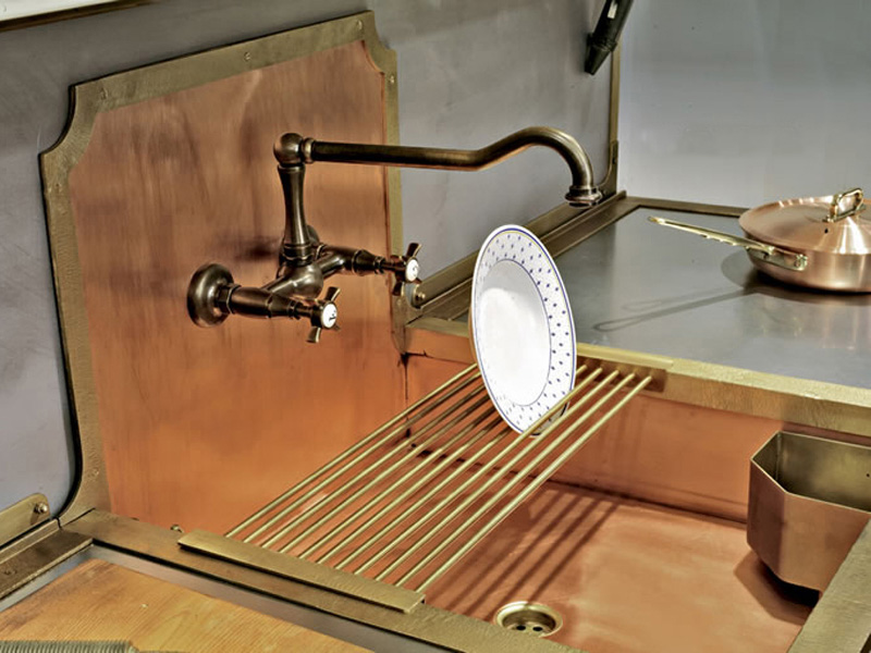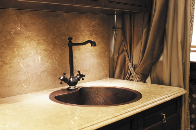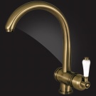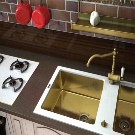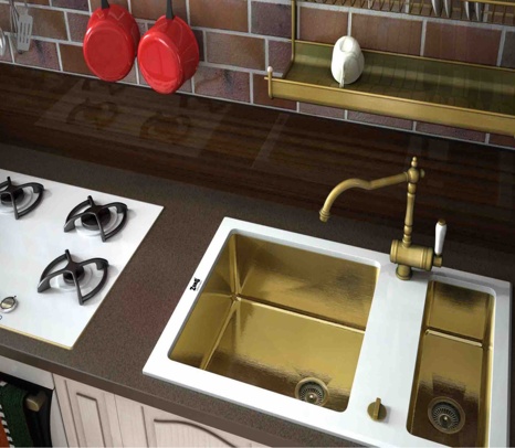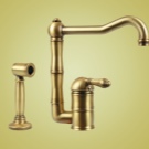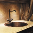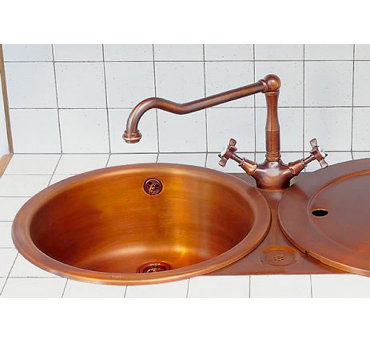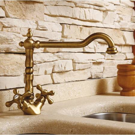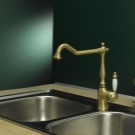 Beautiful bright kitchen goes well with antique mixers. They are the center of attention for this room, and the stylish Tuscan furniture is in harmony with this kind of bathroom fixtures. Often, copper-colored mixers are coated with gold or silver.Especially stylish and elegant they complement the kitchen in antique design. Aristocratic dark furniture gives the overall atmosphere of a certain nobility, and in combination with bronze models the atmosphere is filled with coziness and comfort.