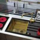 The kitchen where the bronze mixer is located looks really beautiful, stylish and aristocratic. They are considered a symbol of wealth and good taste of the owners of the house. The product line consists of both traditional models and more modern or made to order.