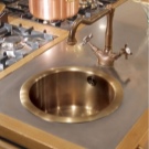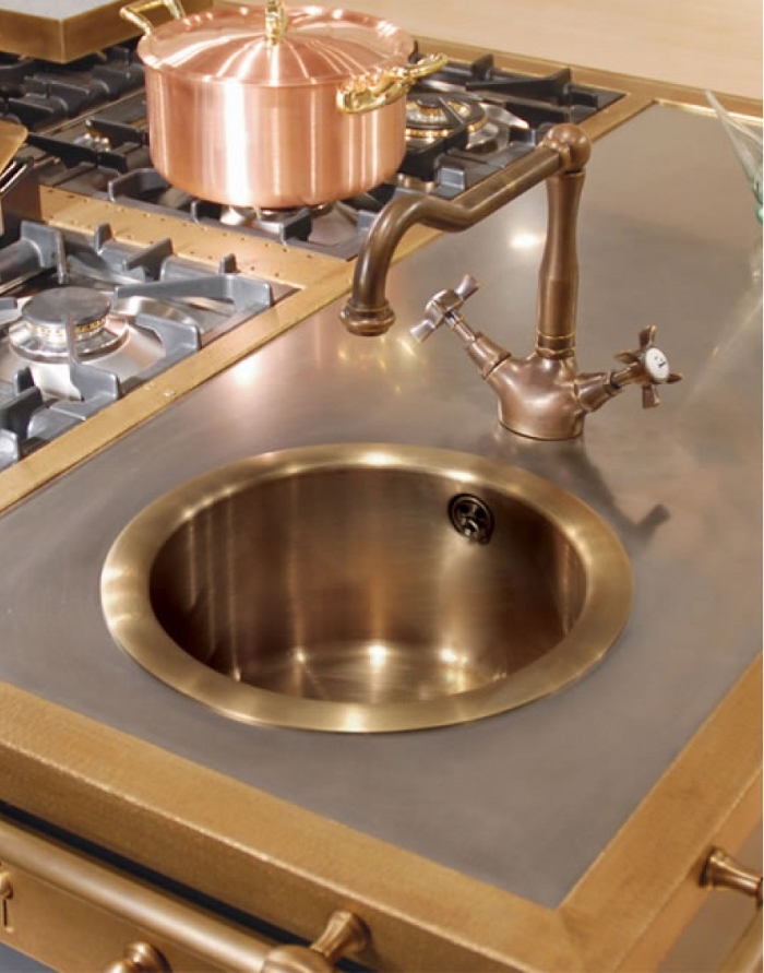 This type is beautifully combined with a stove and sink of an identical shade. The feeling of comfort creates the presence in the kitchen tablecloth with the appropriate colors. Copper or bronze-colored furniture looks quite stylish in combination with a designer bronze faucet. Each such decision creates a atmosphere in the kitchen that is conducive to spiritual conversations, and the owners have the opportunity to immerse themselves daily in the aristocratic atmosphere that prevails around them.