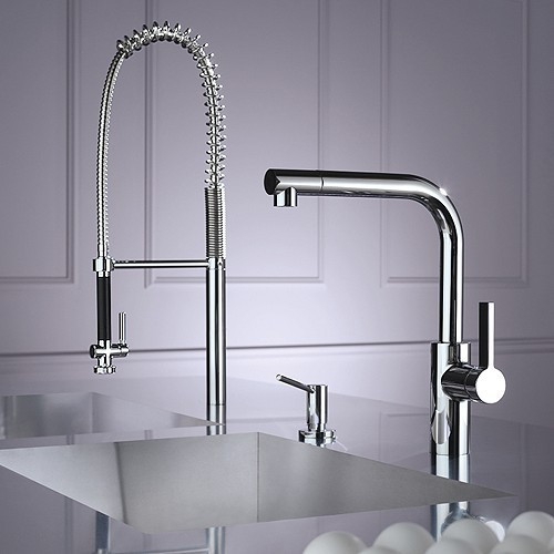 This manufacturer offers a wide range of kitchen faucets with one and two valves.