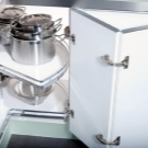 - If you put a washing machine in the kitchen, then the corner stand will be a great place to store washing powder, air conditioning and other household chemicals. For such purposes, you can choose a functional system of Ikea.