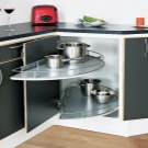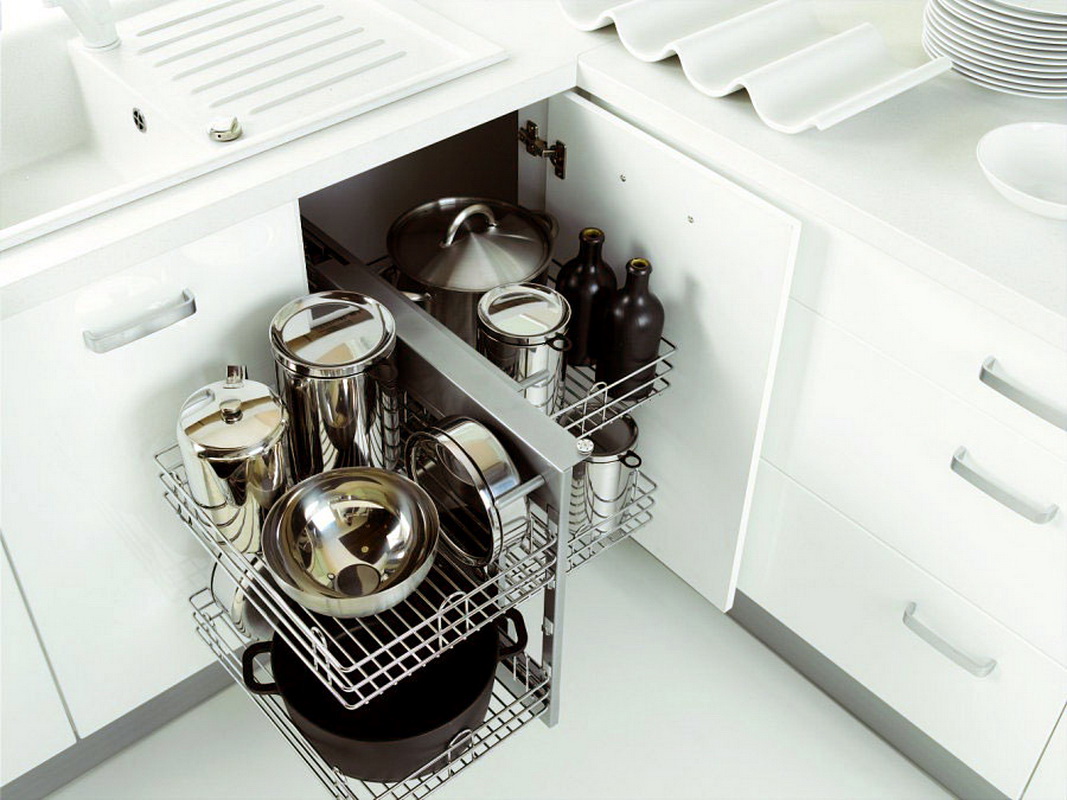 Floor corner stand is quite common in modern kitchens. It is characterized by several advantages: