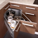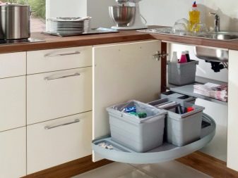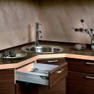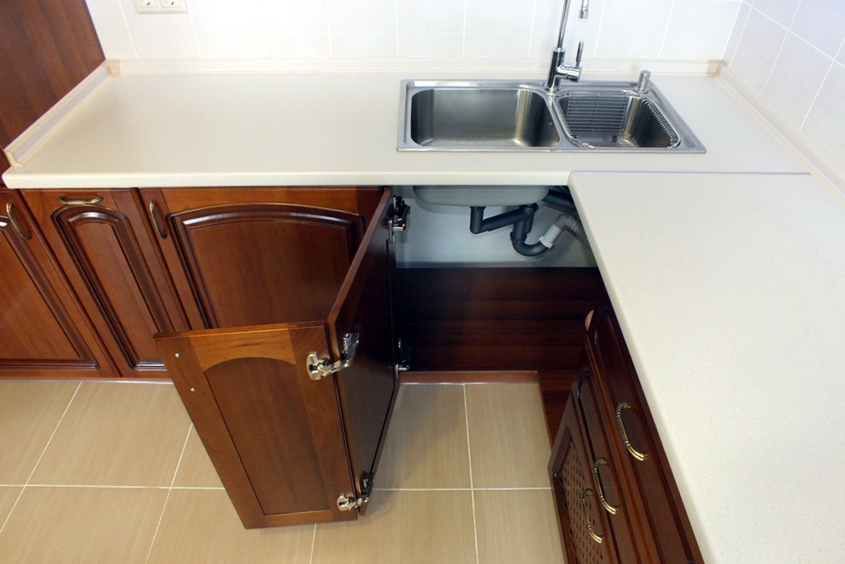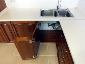 When planning the atmosphere of the kitchen, special attention should be paid to the location of the sink. This attribute usually takes quite a lot of space. You can solve this problem by installing a corner cabinet under the sink for the kitchen. This element of the headset will fit perfectly in both spacious and small room.