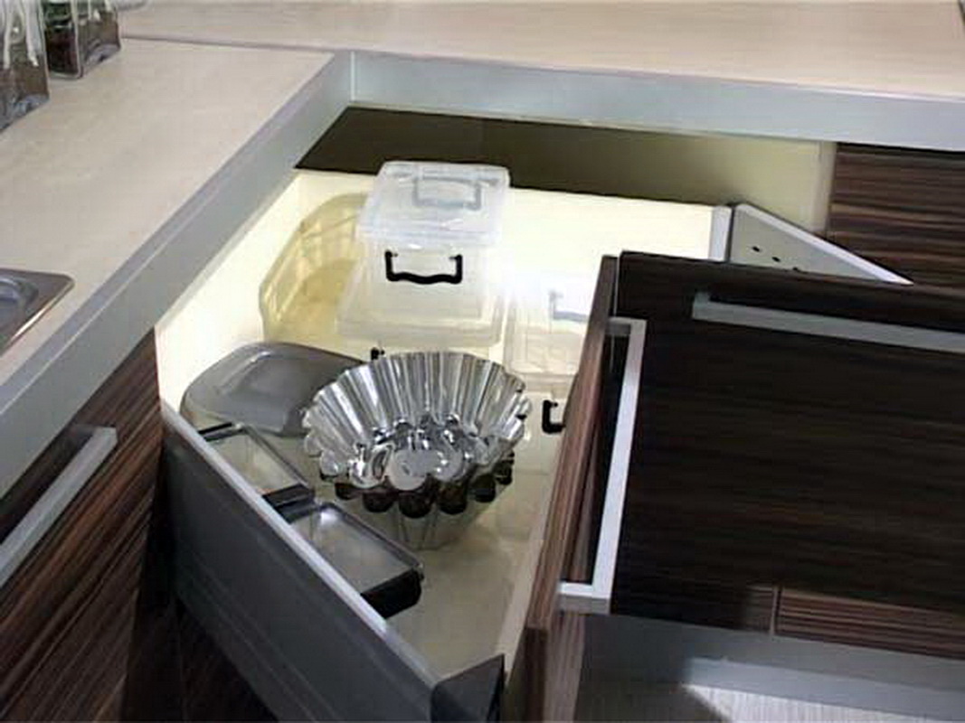 - Complete the set with a few hidden drawers. Here you can store not only cutlery, but also other kitchen stuff. It will not be superfluous as a folding container and other similar attributes.