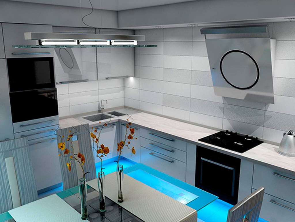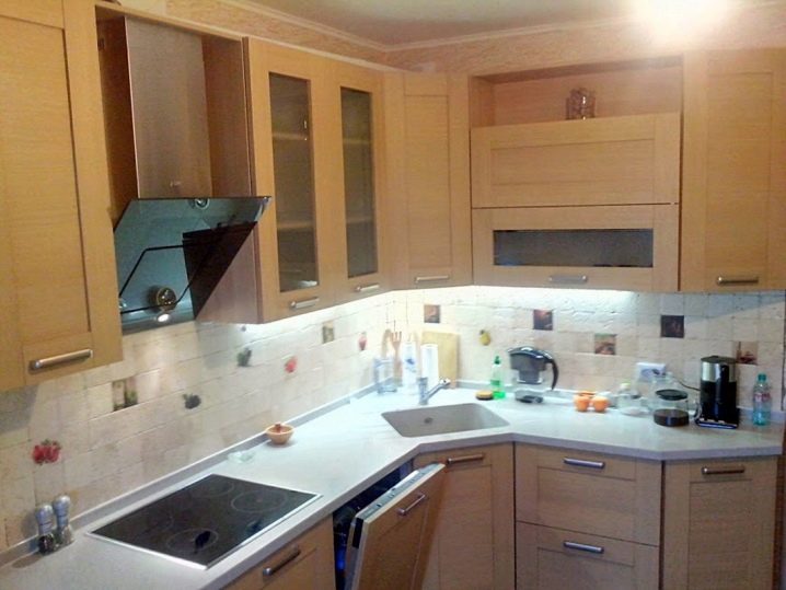 - Takes up a lot less space, saving space. To achieve this positive effect, you need to correctly pick up all the other attributes of the kitchen set.