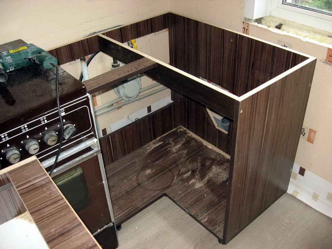 Assembling this part of the kitchen is easy enough. Before proceeding to the construction, you must first draw up a plan-scheme and select the appropriate materials (sheets, fasteners and fittings). The process of mounting the corner stand can be described in several steps:
