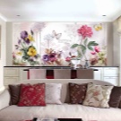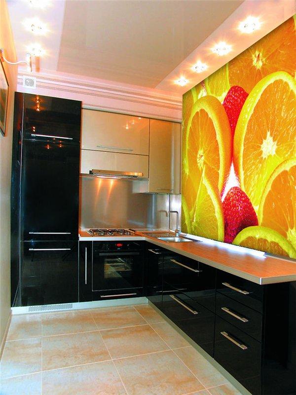When repairing a small kitchen, you can use part of the wall as an artistic object. Make an emphasis in the form of wallpaper in the flower - they will make the room already and above, or in a horizontal strip - the kitchen will be wider.