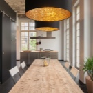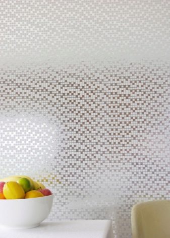 Glass fiber. Glass wallpaper is recognized as a better, “breathing” type of wallpaper. This is the most durable wallpaper, masking fine cracks. Glass fiber is fireproof and moisture resistant. They are hypoallergenic. Glass fiber is a version of wallpaper for painting. They can be painted up to 15 times with water-based or acrylic paint. And thanks to the embossed texture in the form of rhombuses, twigs, all kinds of patterns, you can choose the perfect option for any kitchen.
