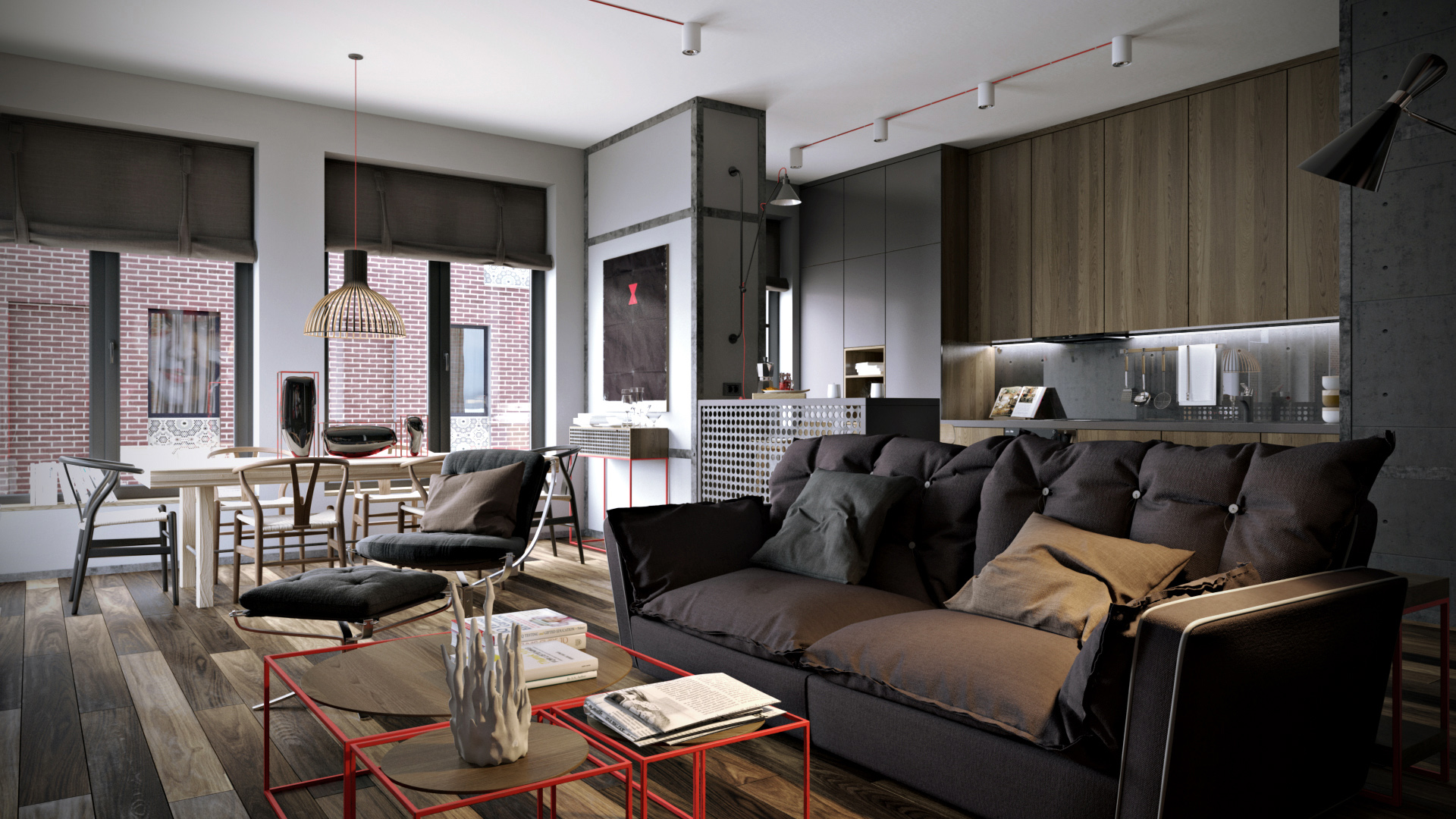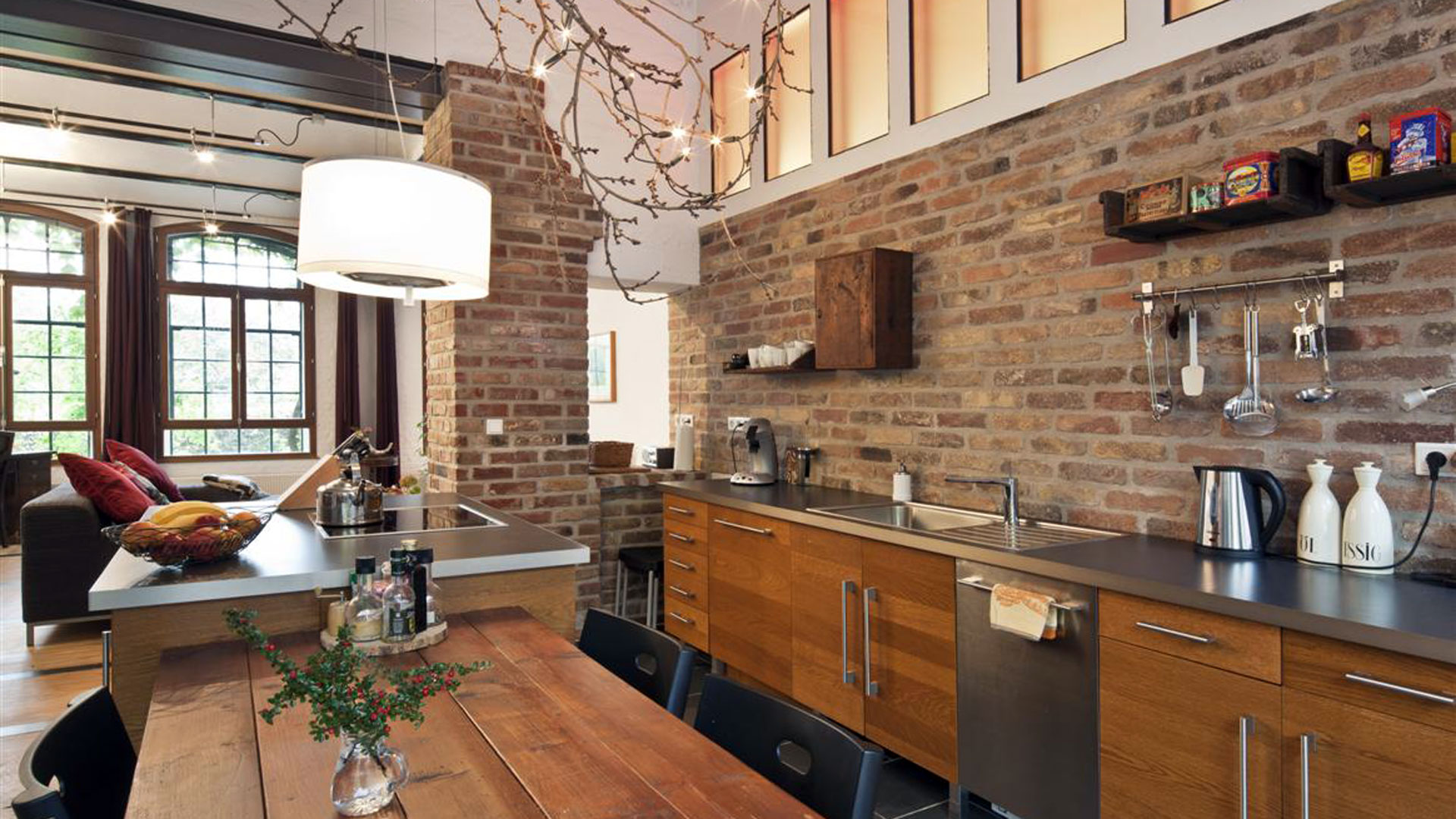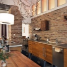For a loft-style kitchen, wallpapers with imitation brickwork or bare plaster are ideal - the effect of an uninhabited wild room today is at the peak of popularity among interior design ideas.