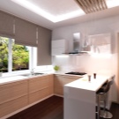 For such a kitchen will be the best to use wallpaper with a small pattern. There is an unspoken rule - the smaller the room, the finer the picture should be on the wallpaper.