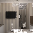 Vertical separation of the room will help make it visually higher, as if to raise the ceiling line. For this method, use the appropriate wallpaper in a vertical strip, placing them in the center of one wall or completely covering the whole wall. It is possible to use both wallpaper with stripes of the same color, and color in combination with monochromatic textures.