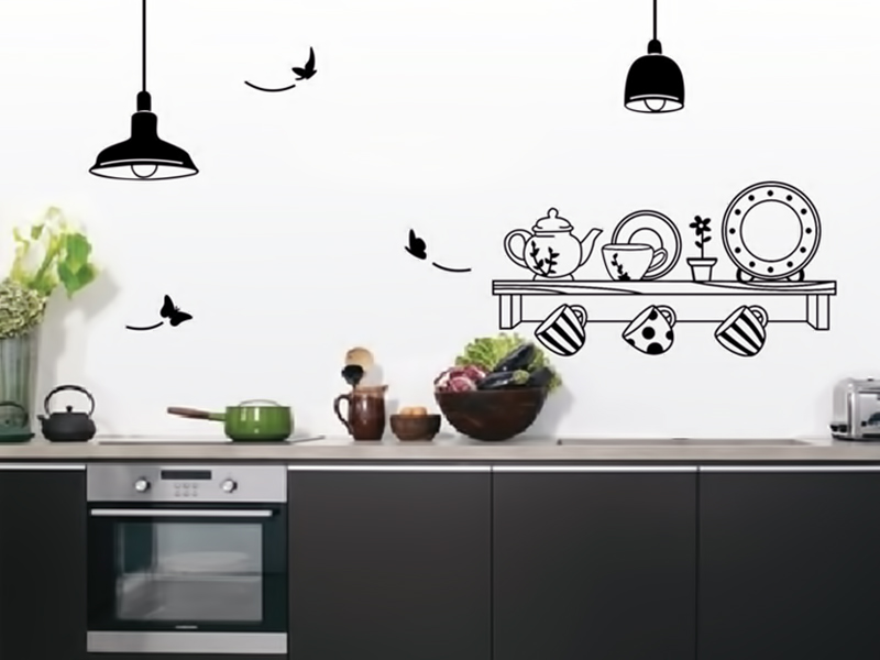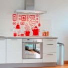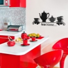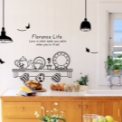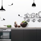 In modern kitchen interiors, the combination of neutral wallpapers with bright colors is very popular. It is very fashionable to use stickers in the kitchen interior, they can be both color and black and white: butterflies, kitchen utensils, plates, geometric.