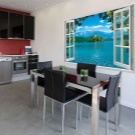 It is interesting to look at the wallpaper with a three-dimensional image - they accent the wall, making the kitchen stylish and extraordinary.