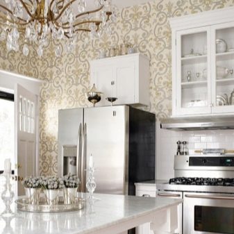 More and more wallpaper manufacturers are recommending for the kitchen to choose washable options on non-woven base or based on fiberglass. Thus, in the presence of a huge species diversity of wallpaper, everyone can choose an option to his liking and afford it.
