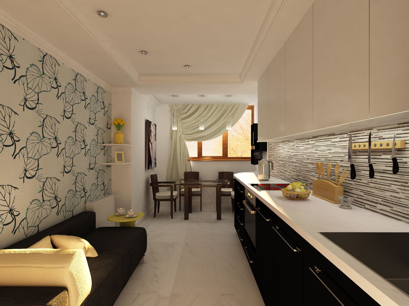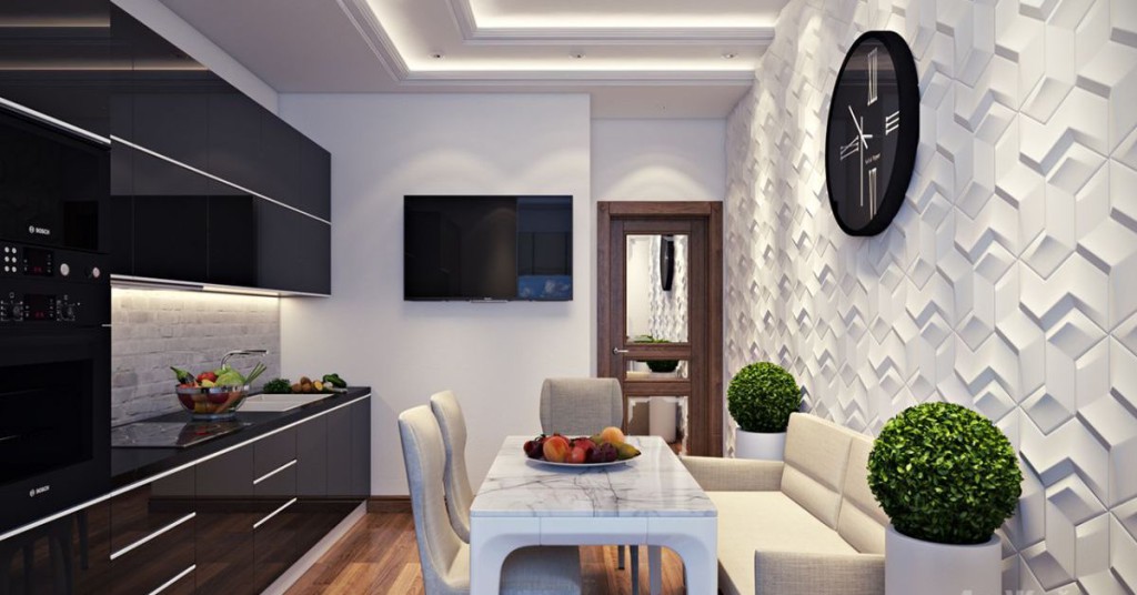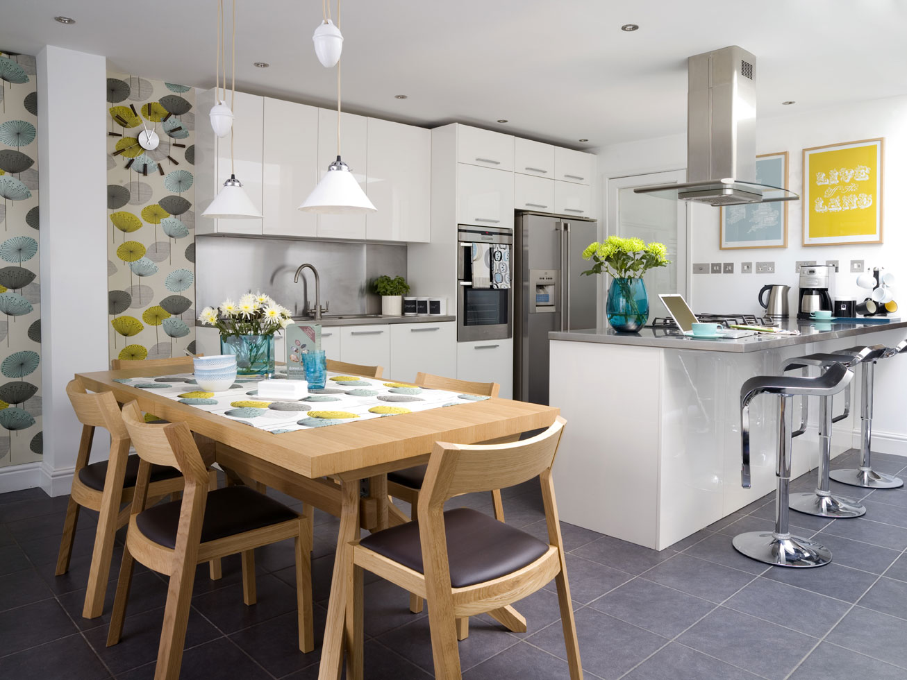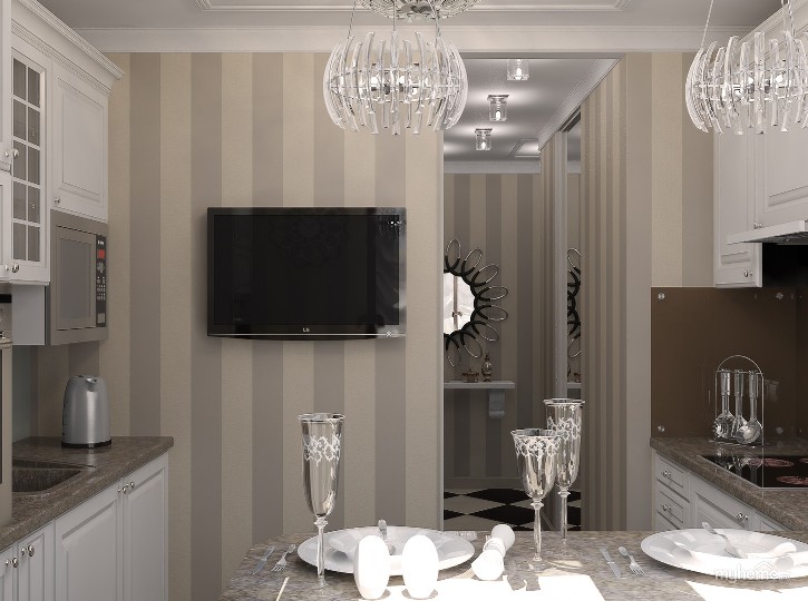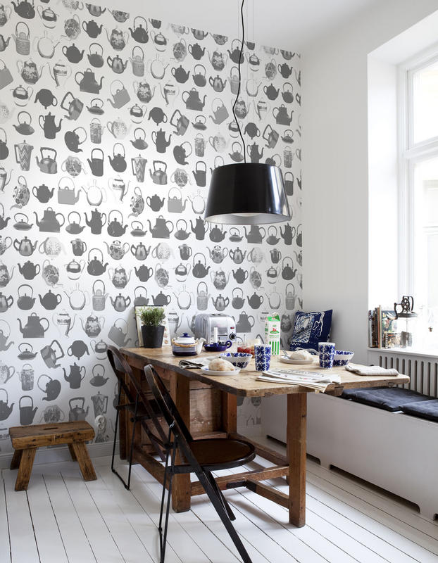 - look for a wallpaper with the goal of making the kitchen space visually larger and larger